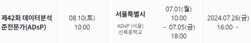 집 근처에 시험장이 없기도 하고 그나마 가까운 곳도 다 만석이 되어버려서 양천구의 신목중학교까지 가서 응시를 하게 되었다. 날이 너무너무너무 더웠지만... 일단 가서 응시했다. ADsP와 ADP 가 같은 날 시험을 보기 때문에 데이터와 관련된 많은 사람들이 응시하러 왔다. 하지만 그렇게 많은 사람들이 응시하러 왔는데도, 내가 배정받은 고사실에는 반 정도가 결시하여 그것 또한 놀랐다.